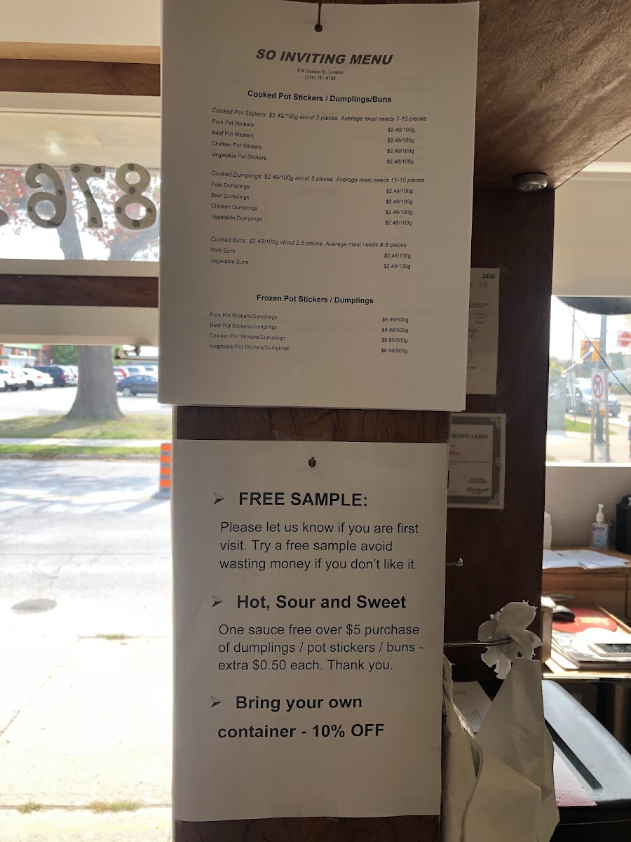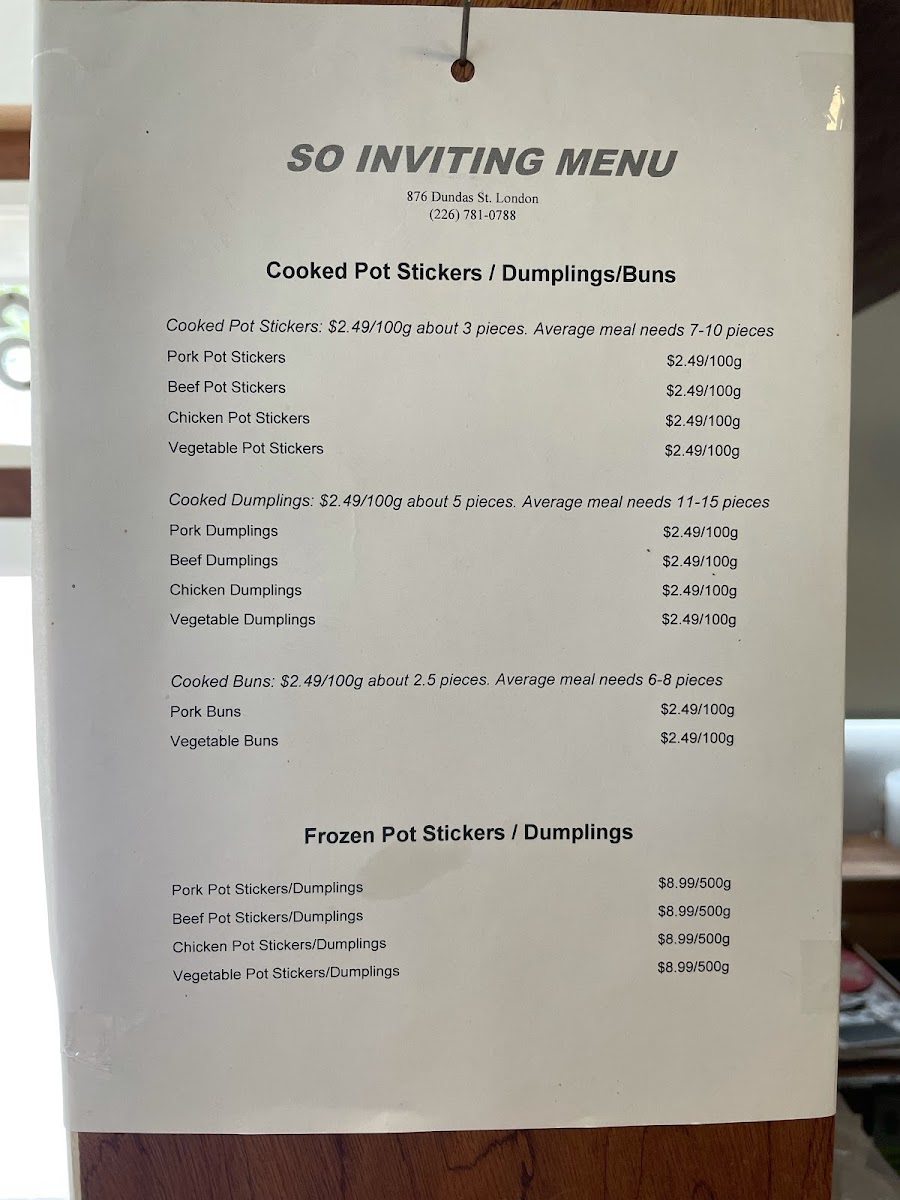 The So Inviting Menu at 876 Dundas St, London, ON, offers a warm, comforting selection of dishes perfect for anyone craving a delicious, home-style meal. Their menu provides a wonderful variety of choices that make it easy to enjoy flavorful options, whether you’re in the mood for something light or more filling. A standout feature of the So Inviting Menu is its range of potstickers, available in chicken, pork, vegetable, and beef options, with each order providing ten pieces. These crispy, golden dumplings are the perfect appetizer or snack to share with friends and family. Pair them with a hot bowl of their signature Hot & Sour Soup, which is flavorful and spicy, hitting all the right notes for a delicious start to your meal.